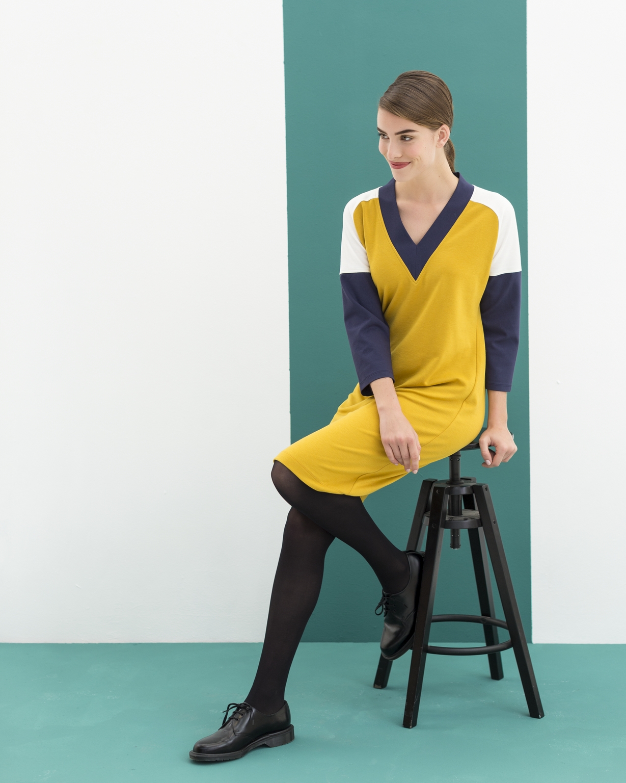 Kijk voor meer sportieve (sweater)jurk patronen in onze webshop. Daar vind je onder meer dit getailleerde model uit vier kleuren soepele joggingstof.