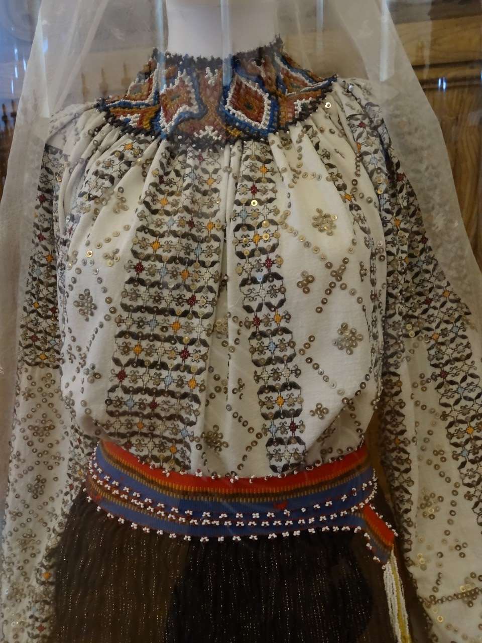 Omdat het altijd extra leuk is om te ontdekken waar de designers – het is met name de Franse top-ontwerpster Isabel Marant die deze trend zette – hun inspiratie vandaan halen, wil ik jullie graag laten zien wat ik aantrof tijdens een kort bezoek aan Roemenië vorige week. Ik was daar met mijn twee collega’s Angelique en Christine om een naaiatelier te bezoeken dat voor ons de afgelopen jaren werkzaam is geweest. Nou moet ik zeggen dat er verder helaas weinig sprankelends te ontdekken valt in die plaats waar het atelier gevestigd was, dus een bezoek aan een onlangs gerestaureerd paleis bood uitkomst. En daar hadden we geen spijt van. Tjonge jonge, behalve een indrukwekkend interieur met prachtige in zwart-wit marmer gelegde vloeren zagen we in de verschillende zalen de rijke historie van diverse ambachten in Roemenië. En we zouden geen modemeisjes zijn als onze hartjes niet een beetje sneller gingen kloppen bij het betreden van de ruimte waar tientallen poppen stonden tentoongesteld met werkelijk de aller, allermooiste klederdrachten uit het rijke verleden van Roemenië. Zo bijzonder, zo prachtig van kleur, zulke schitterende borduurpatronen en alles natuurlijk puur handwerk. Kwijlend stonden we er met onze neuzen bovenop en genoten van al die bijzondere steken, kraaltjes en kleurige garens. ‘Dat is nog eens iets anders dan al die massaproductie!’, concludeerden we bijna tegelijkertijd.