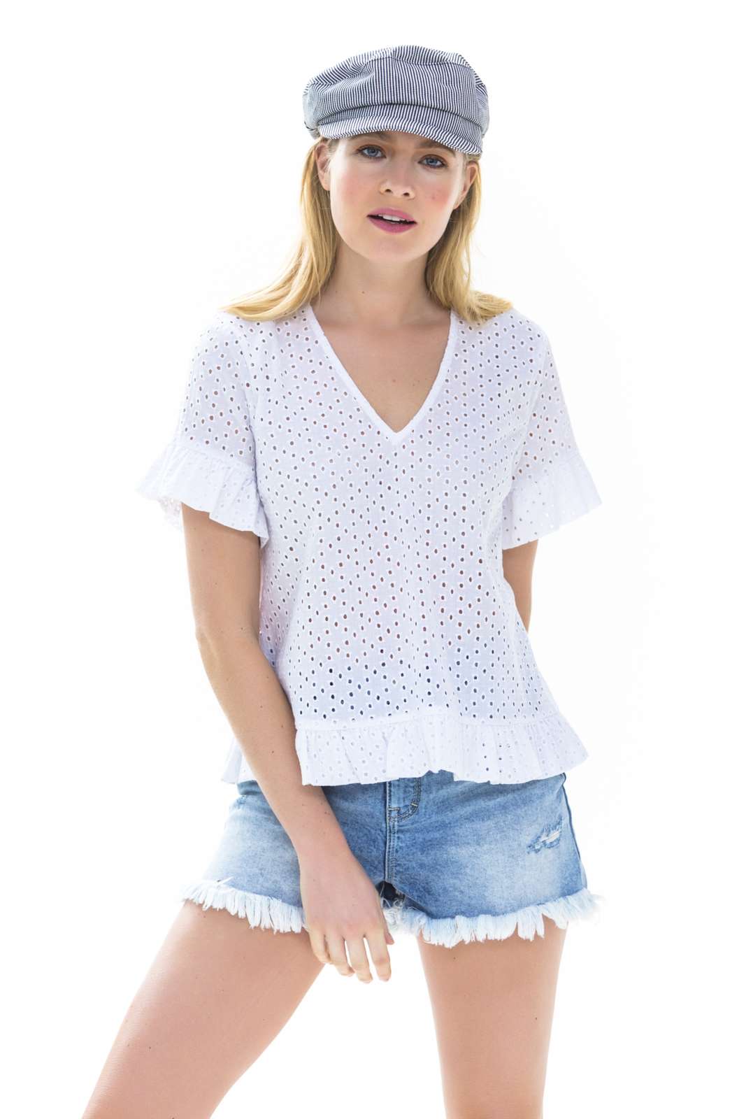 Een echte klassieker die nu helemaal ontdaan is van zijn tuttige imago is de stof broderie. Momenteel is broderie behalve in wit, ook veel te zien in gekleurde varianten zoals zwart, kaki en vrolijke kleuren. Eigenlijk heet de stofsoort broderie anglaise: een open geborduurde stof van katoen, of katoen-polyester. Soms ook van linnen. Het motief bestaat uit geborduurde gaatjes. Broderie is vanouds vooral te koop in wit, ecru en lieve pasteltintjes. Het wordt veel gebruikt voor babyspulletjes; wiegbekleding, klassieke mutsen of jurkjes. Maar deze zomer is het opnieuw een modehit. Wij kozen een aantal keren voor witte broderie, voor het optimale zomergevoel.