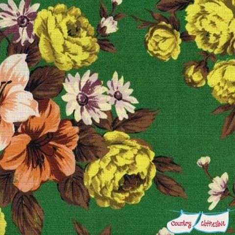 Ooit had ik een rode sprei met reusachtige vrolijke bloemen. Tweedehands gekocht. Ik sleepte het overal mee naartoe, ook toen de kinderen klein waren. Fijn om op te spelen en voor buiten in het gras. Het had zo’n lekker dikke gewatteerde tussenlaag. Toen wenste ik dat je dat soort fantastische kleurrijke vintage bloemen ook nu nog aan de meter kon kopen. En dan niet alleen voor interieurspullen, ook voor een wijde rok bijvoorbeeld. Nu kwam ik deze tegen: vintage bloemendessins die doen denken aan fifties jurken, rokken én interieurstoffen. Te koop aan de meter. Voor liefhebbers!