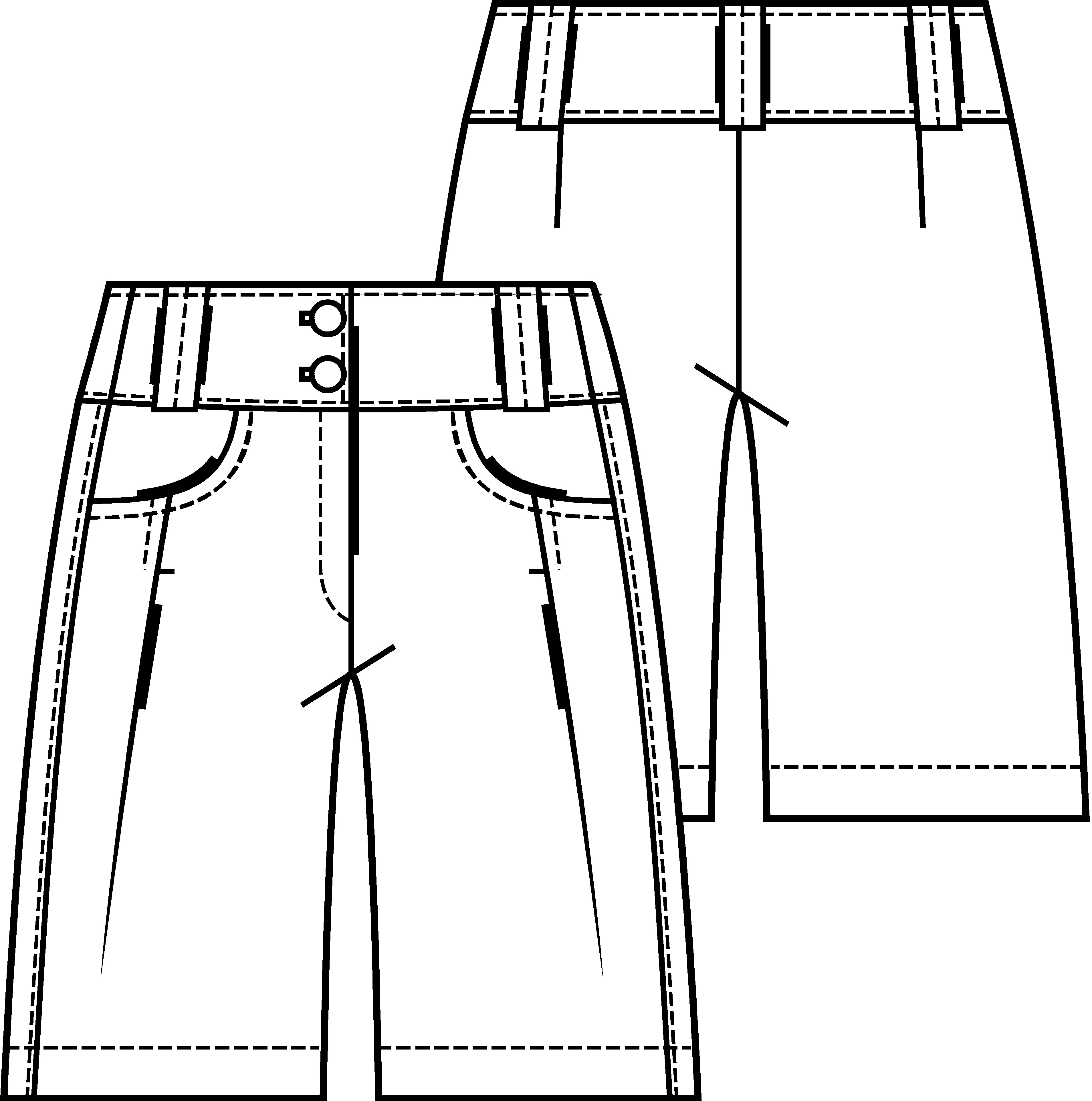 Bermuda 4 doet wat voor je figuur door de combinatie van brede tailleband en uitlopende pijpen, wat optisch slanker maakt. Op de tailleband zijn vier lange ronde lussen genaaid. Onder de rond steekzakken zit een plooi.