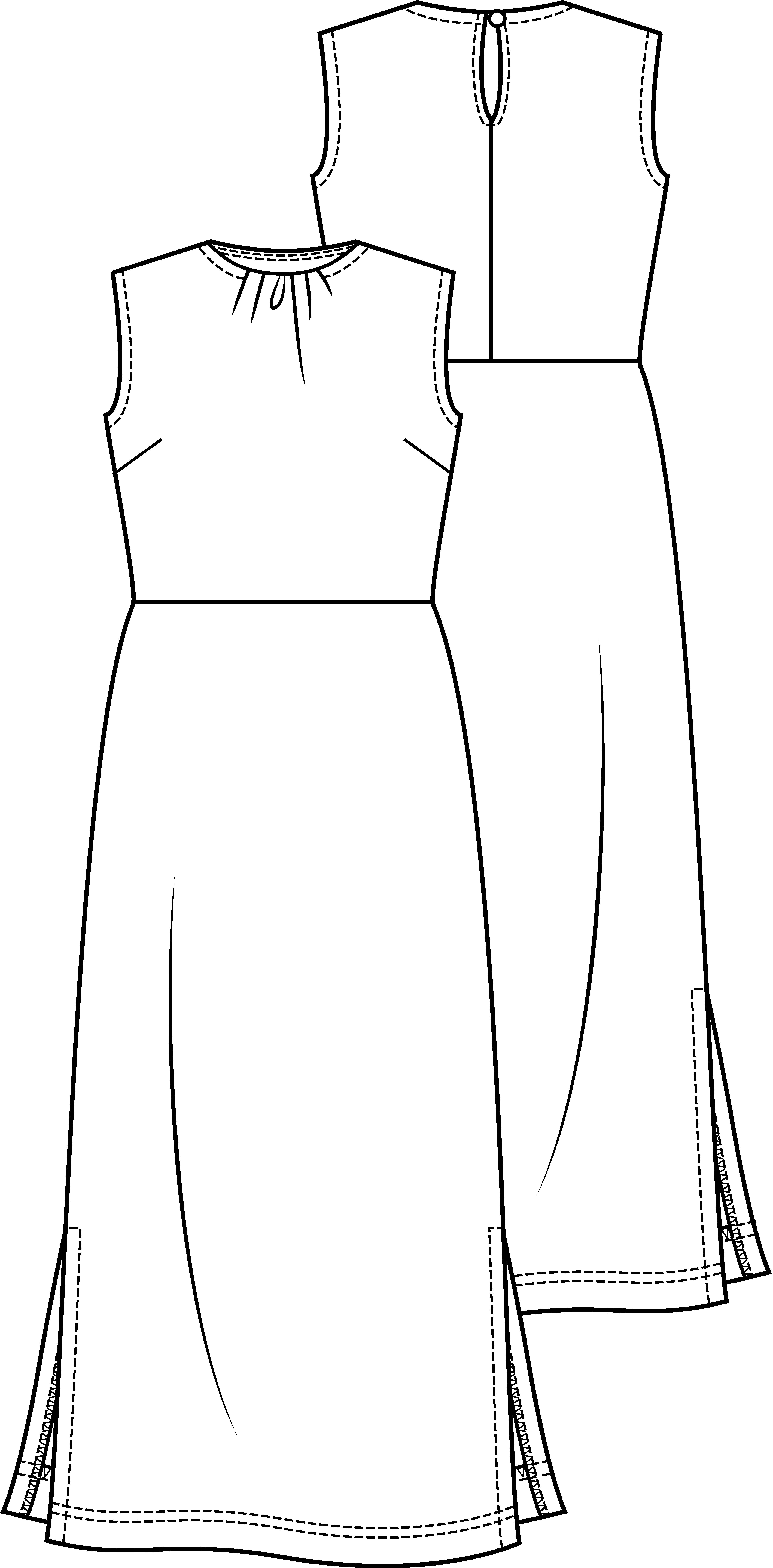 Jurk 13 is een no nonsense-model met rimpeltjes in de halslijn, coupenaadjes bij de buste en achter sluitend met een split met knoopje.