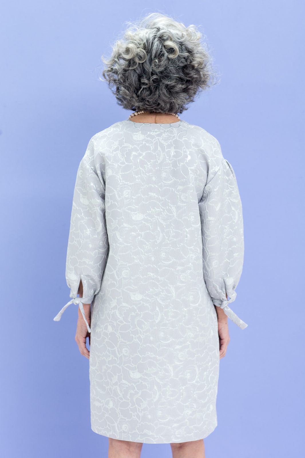 “Ik vind dit een lekkere no nonsense-jurk die je naar werk aan kan, maar ook ’s avonds naar een feestje. De jacquard-stof maakt dit eenvoudige model bijzonder.”