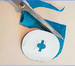 Knip een reep Decovil met als breedte de binnenmaat van de bekleedbare gesp. Knip de lengte volgens de matentabel 34 t/m 54 (0.95m-0.95m-1.00m-1.05m-1.10m-1.15m-1.20m-1.25m-1.35m-1.40m). Knip eventueel een puntje aan het uiteinde of houdt het recht, net wat je zelf mooi vindt.