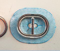 Aan weerzijde van deze nesteloog kun je twee extra ogen maken, houdt daarbij telkens een afstand van 3cm aan. Bevestig de nestelogen met een tang of een hamer volgens de beschrijving op de verpakking.