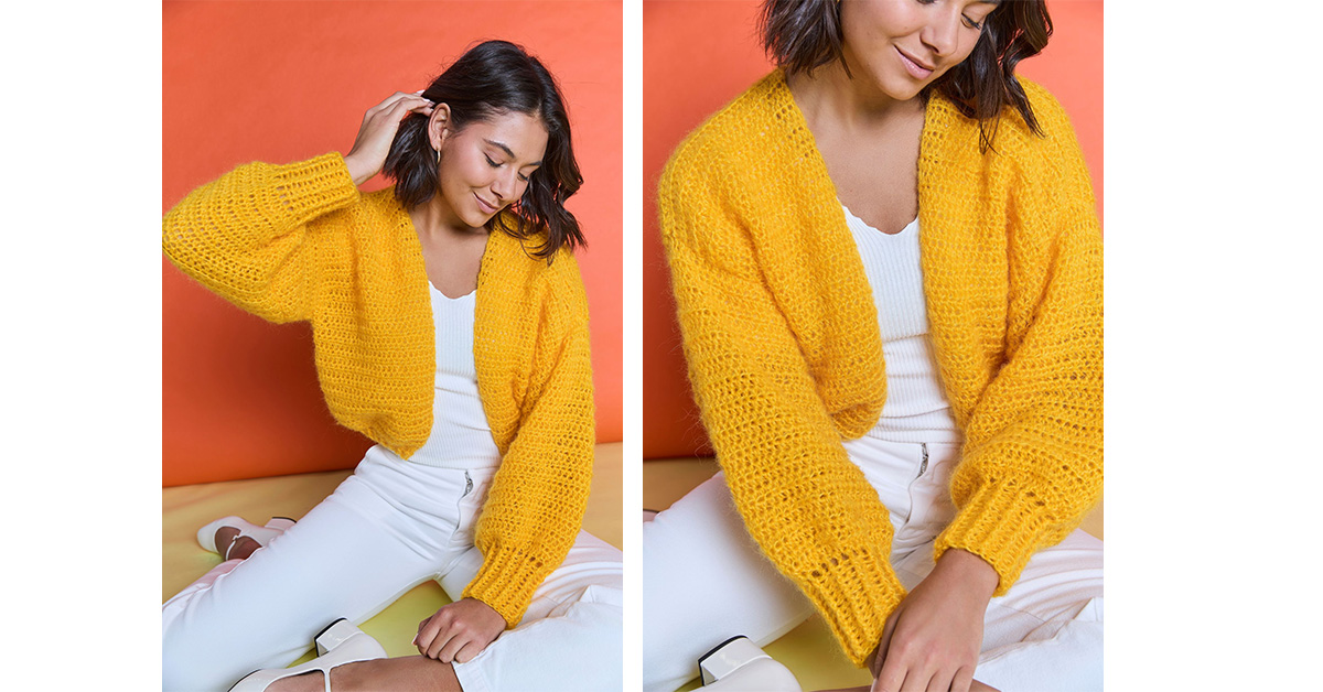In zo’n zachte wolk van een gehaakt vestje ga je lekker warm gekleed. En kies je een opvallende kleur, dan heb je altijd dat leuke kleuraccent voorhanden in je garderobe. Het past perfect over al je jurken en blouses met wijde (pof)mouwen. Het vest is gehaakt op haaknaald nummer 7, met driedubbele draad! Klik hier voor een garenpakket in 10 kleuren. En hier voor het gratis haakpatroon in maat S/M en L/XL.