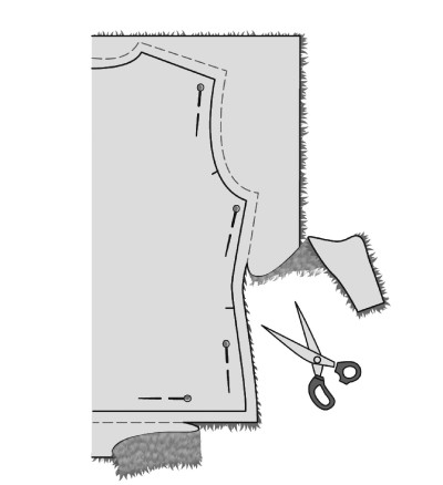 -Gebruik extra spelden – die je dwars in de stof steekt – om verschuiven van de stoflagen te voorkomen. En rijg aan weerszijden van de patroonlijn (de stiklijn) de delen op elkaar. Rijg met kleine steken. Stik daarna precies tussen de rijglijnen in. Zo voorkom je dat tijdens het stikken de stoflagen verschuiven.
