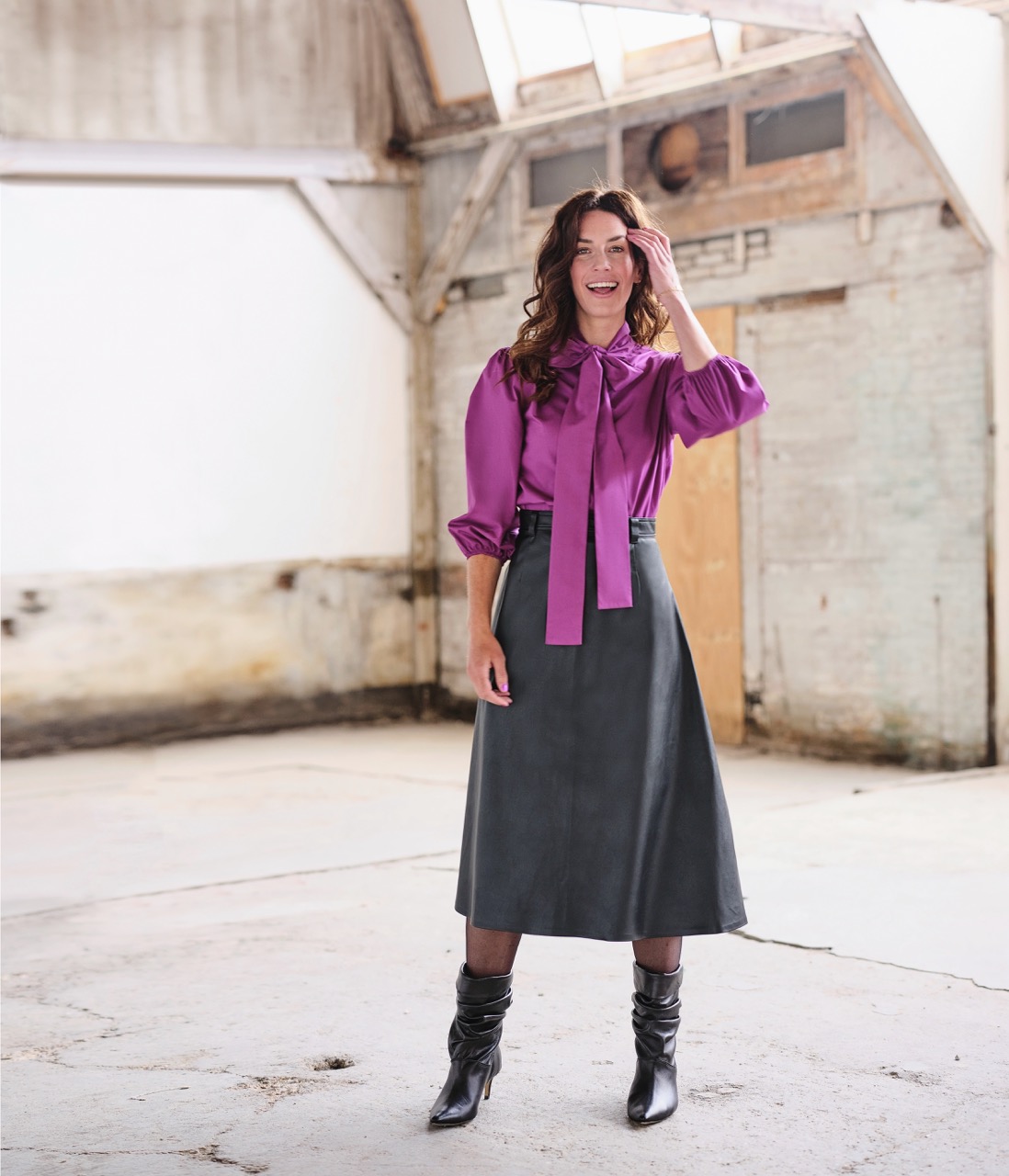 TIP Draag er een los vallende top of blouse op (met V-hals) die je aan de voorkant gedeeltelijk een stukje ín je rok draagt.